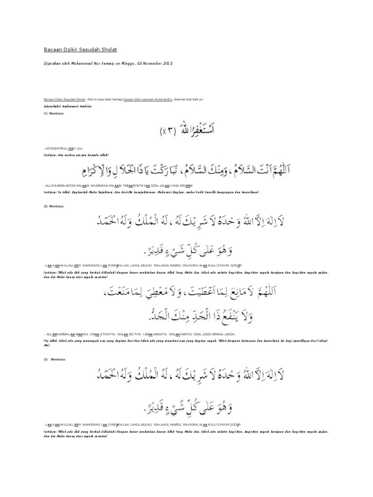 Bacaan Dzikir Sesudah Sholat Pdf